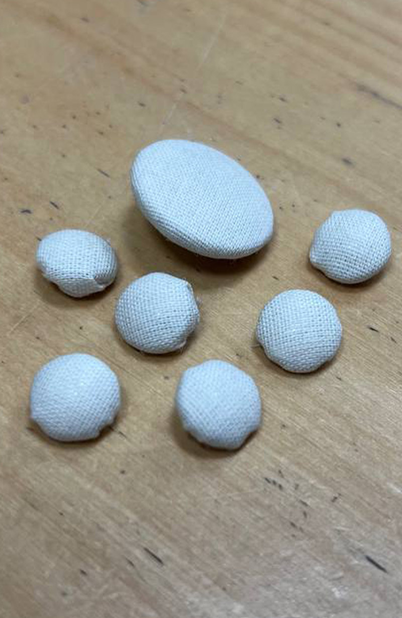 También realizamos el forrado de botones en distintos tamaños, utilizando la tela que tú elijas. Una solución práctica y elegante para quienes buscan dar un acabado profesional a sus proyectos de costura, moda o decoración textil.